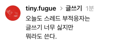 “오늘도 스레드 부적응자는 글쓰기 너무 싫지만 뭐라도 쓴다.”